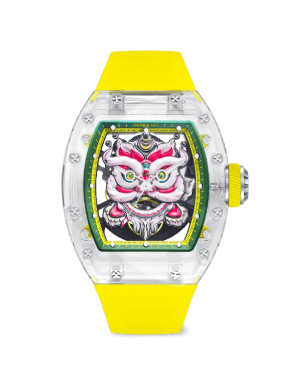 Deeply inspired by the essence of Chinese culture, CRONUSART infuses the intangible heritage of the lion dance into modern mechanical watch design. Using 3D relief, the majestic lion is vividly sculpted on the dial, creating a striking visual impact. The brand’s unique hands feature small circles at their centers, resembling eyes that observe the flow of time. At certain moments, these circles precisely align with the lion’s eyes, awakening its mighty spirit- a symbol of good fortune and auspicious beginnings.