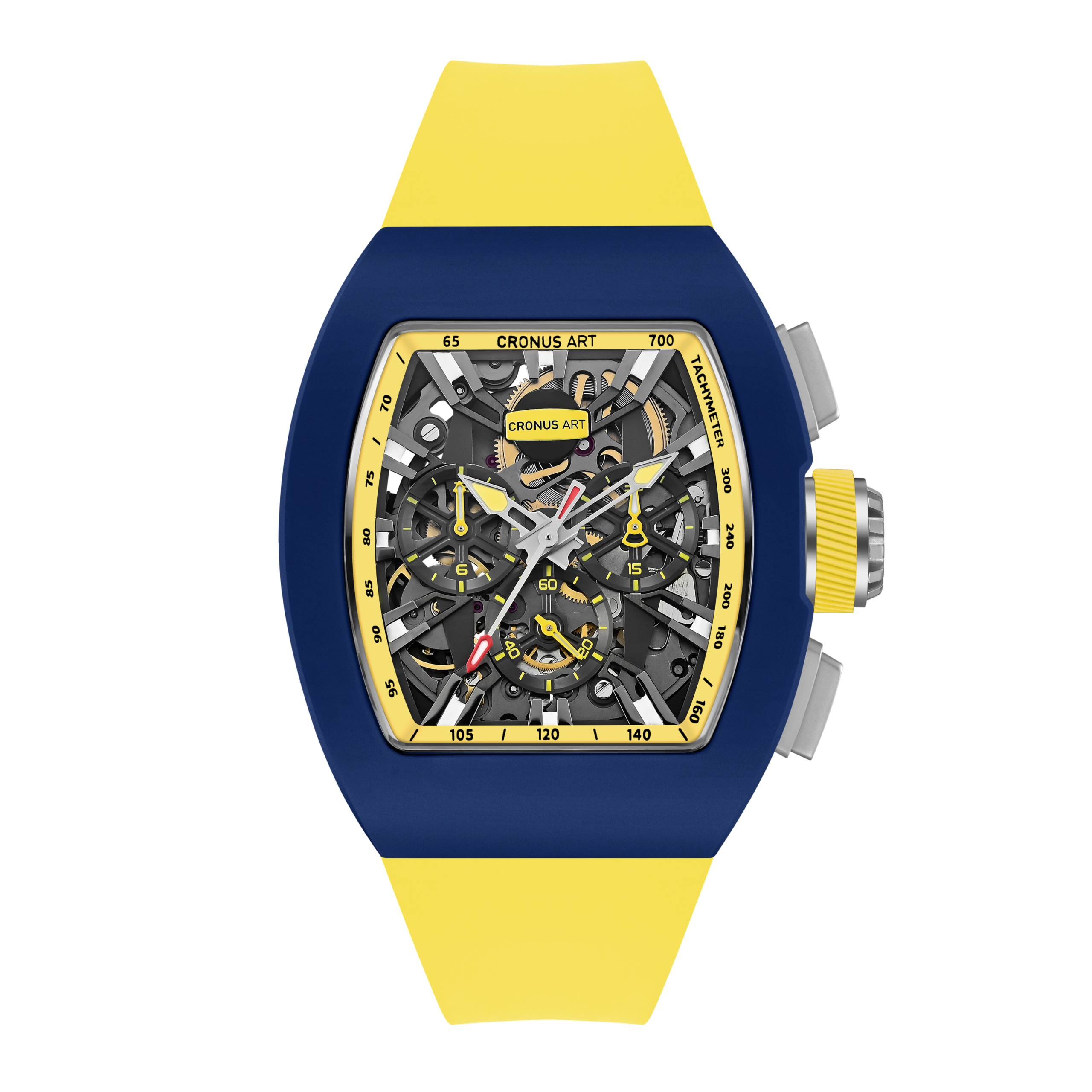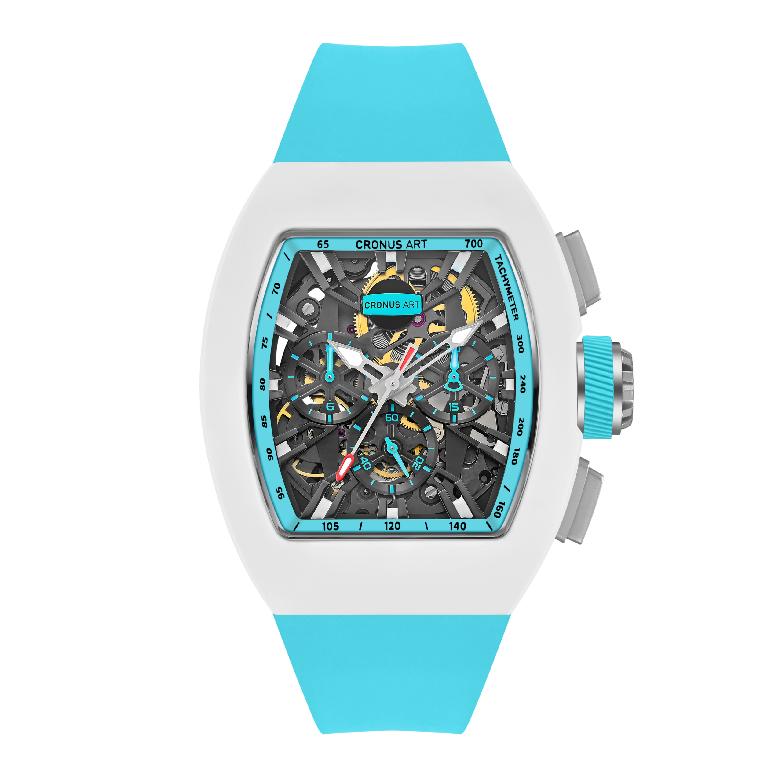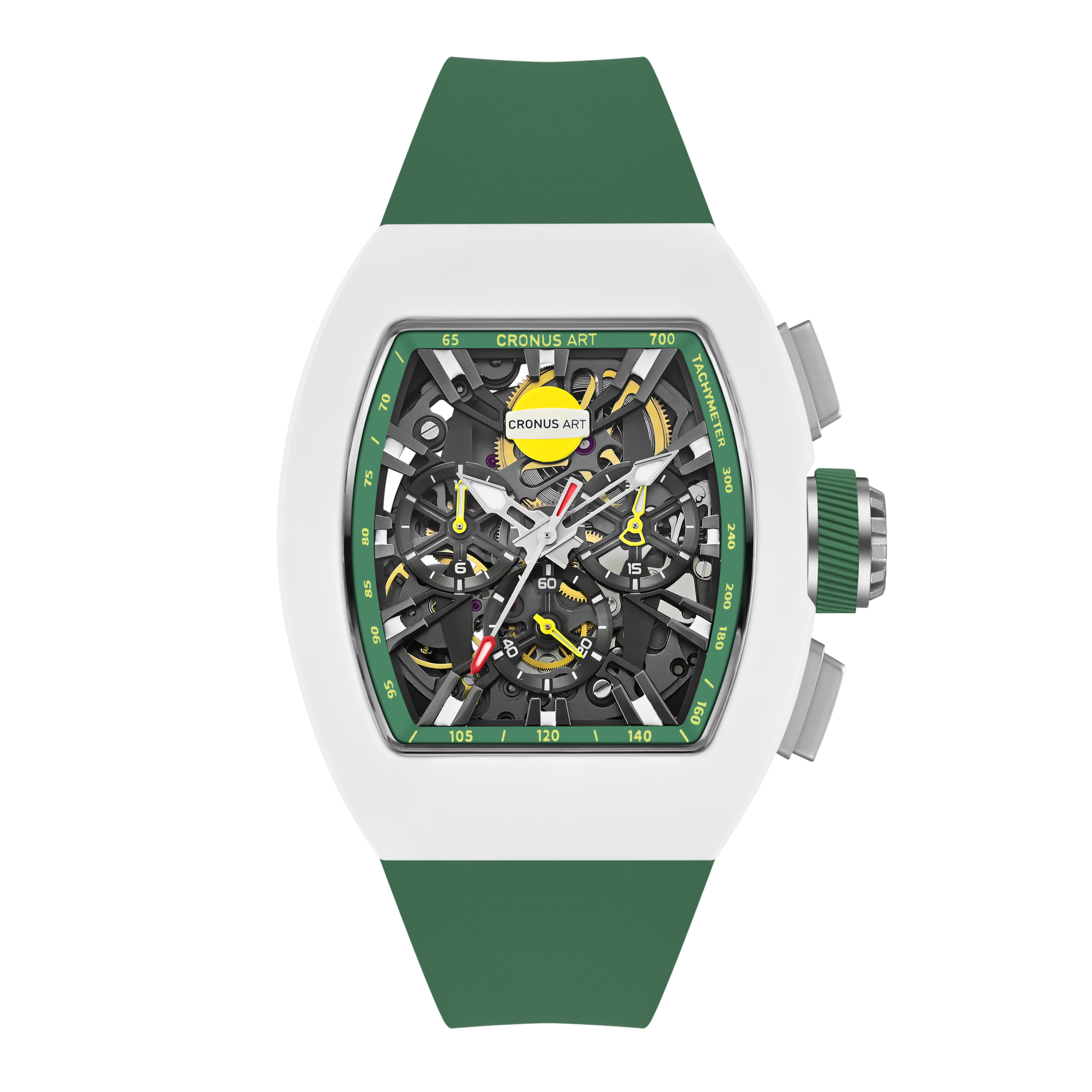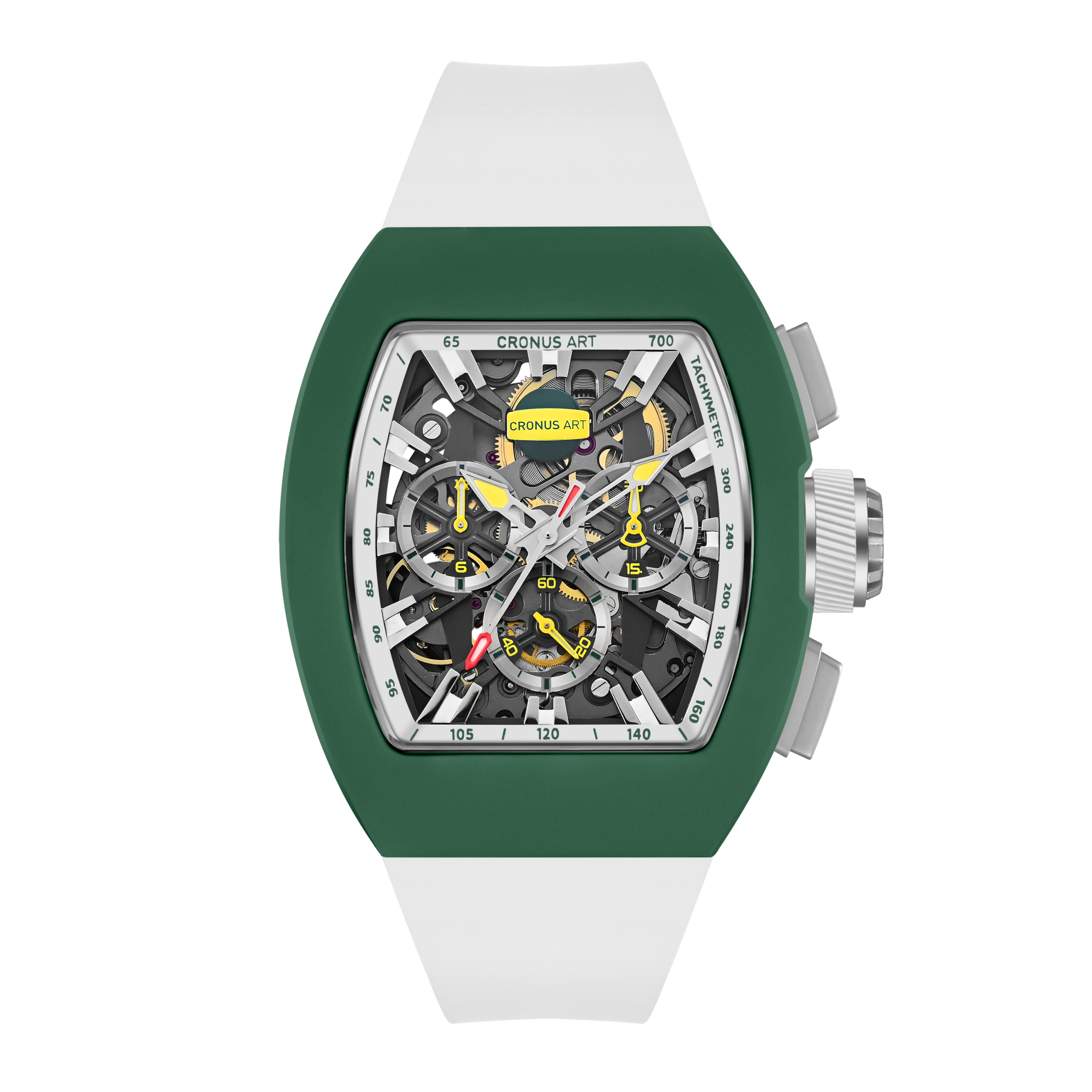 CRONUSART uses geometric lines and spatial perspective to orchestrate a trio of power, speed, and precision. The watch’s hour markers are deconstructed into a dynamic design language, with three-dimensional dual-edged metal blocks resembling the poised footprints of a cheetah, ready to pounce. These elements extend from the edge of the dial toward the center, converging at the tri-compax chronograph core. The converging structure symbolizes the trajectory of speed, capturing the cheetah’s swiftness and precision as it locks onto its target – endowing the watch with the very soul of high velocity.